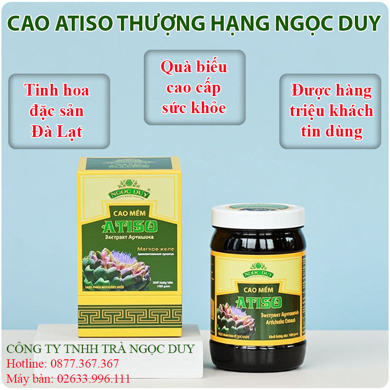 - Cao Atiso Thượng Hạng Ngọc Duy giúp hỗ trợ thanh nhiệt – giải độc gan – bảo vệ sức khỏe lâu dài.
