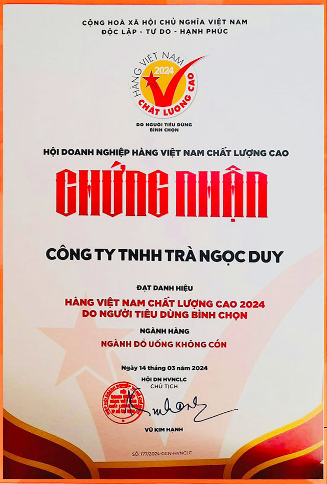 - Đạt nhiều chứng nhận uy tín ISO, OCOP, VIetGap, Hàng việt nam chất lượng cao…