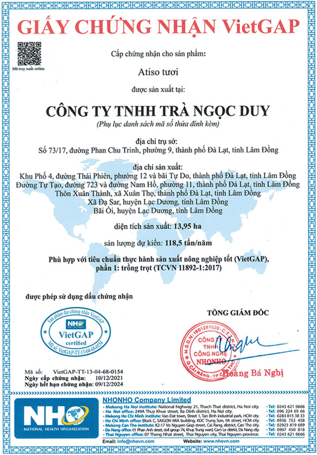 => QUY TRÌNH SẢN XUẤT HOA ATISO ĐẠT CHUẨN QUỐC TẾ